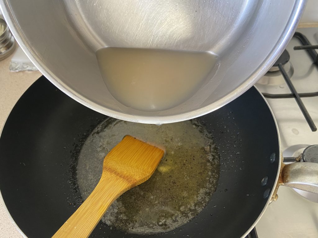 - Bring back the Olive Oil mixture to the flame, and add butter.