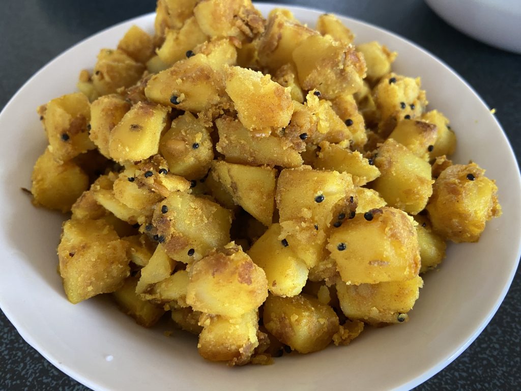 Usually seen in Southern India, like Kerala, this potato dish is a great accompaniment to rice, yoghurt and some other curry.